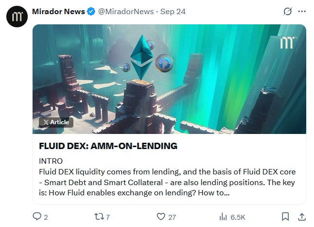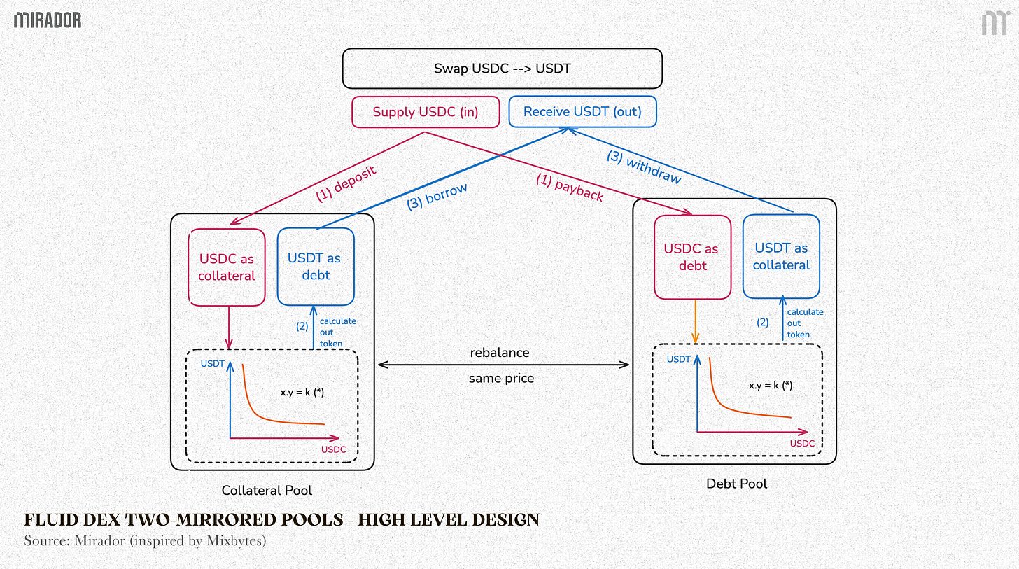 Therefore, each DEX on Fluid will have 2 “mirrored” pools, and each DEX will operate as a user of these two lending positions