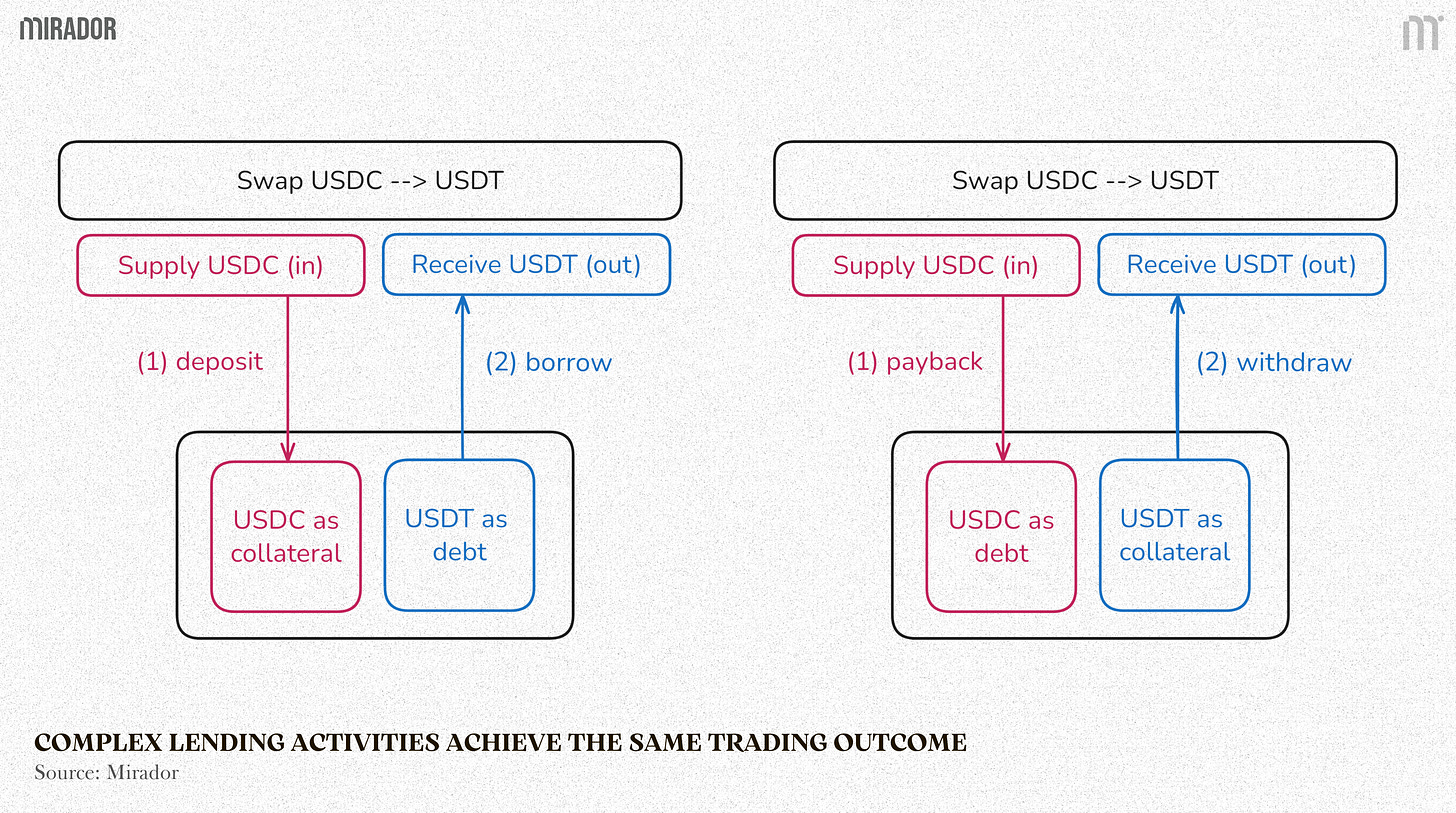 Rather than simply exchanging Token A for Token B, users engage in complex lending activities that achieve the same trading outcome.