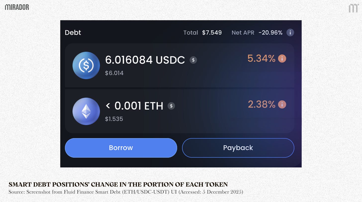 However, in your debt position on Fluid, you won’t see a clean $7 USDC. Instead, it may show like this: