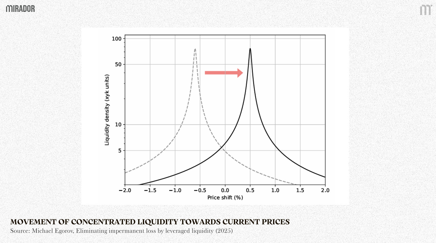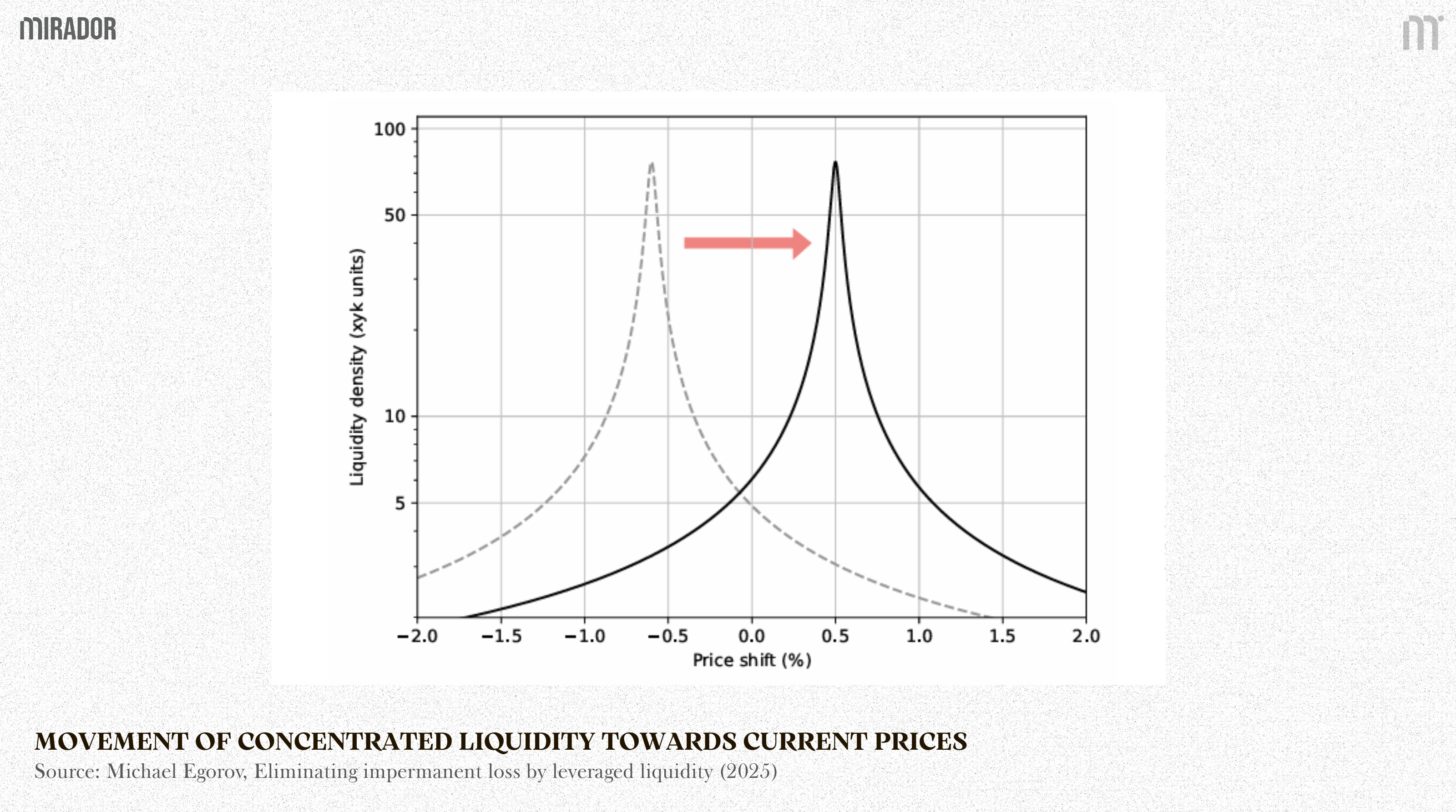 This design improves capital efficiency, but it introduces a challenge: When the market price moves away from the center of concentration, liquidity becomes less effective.