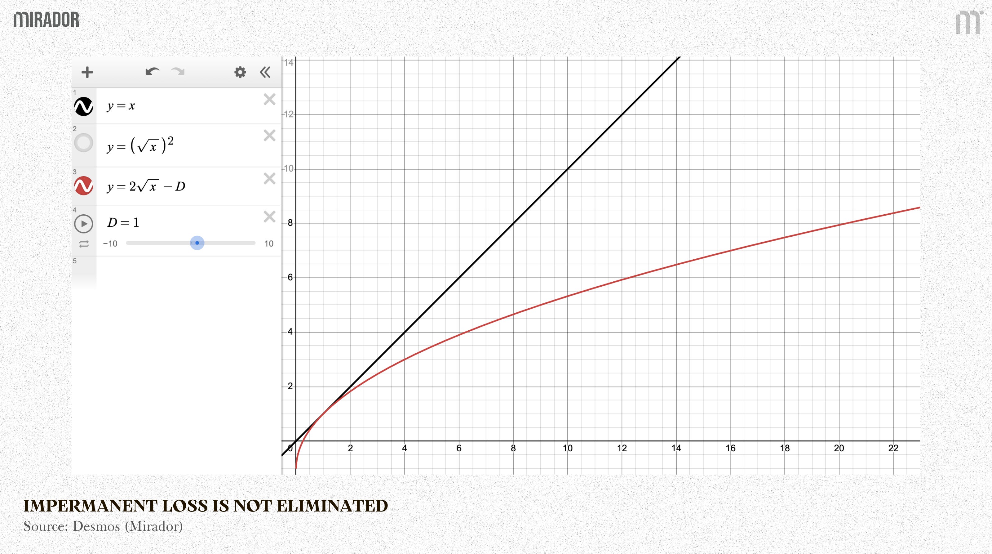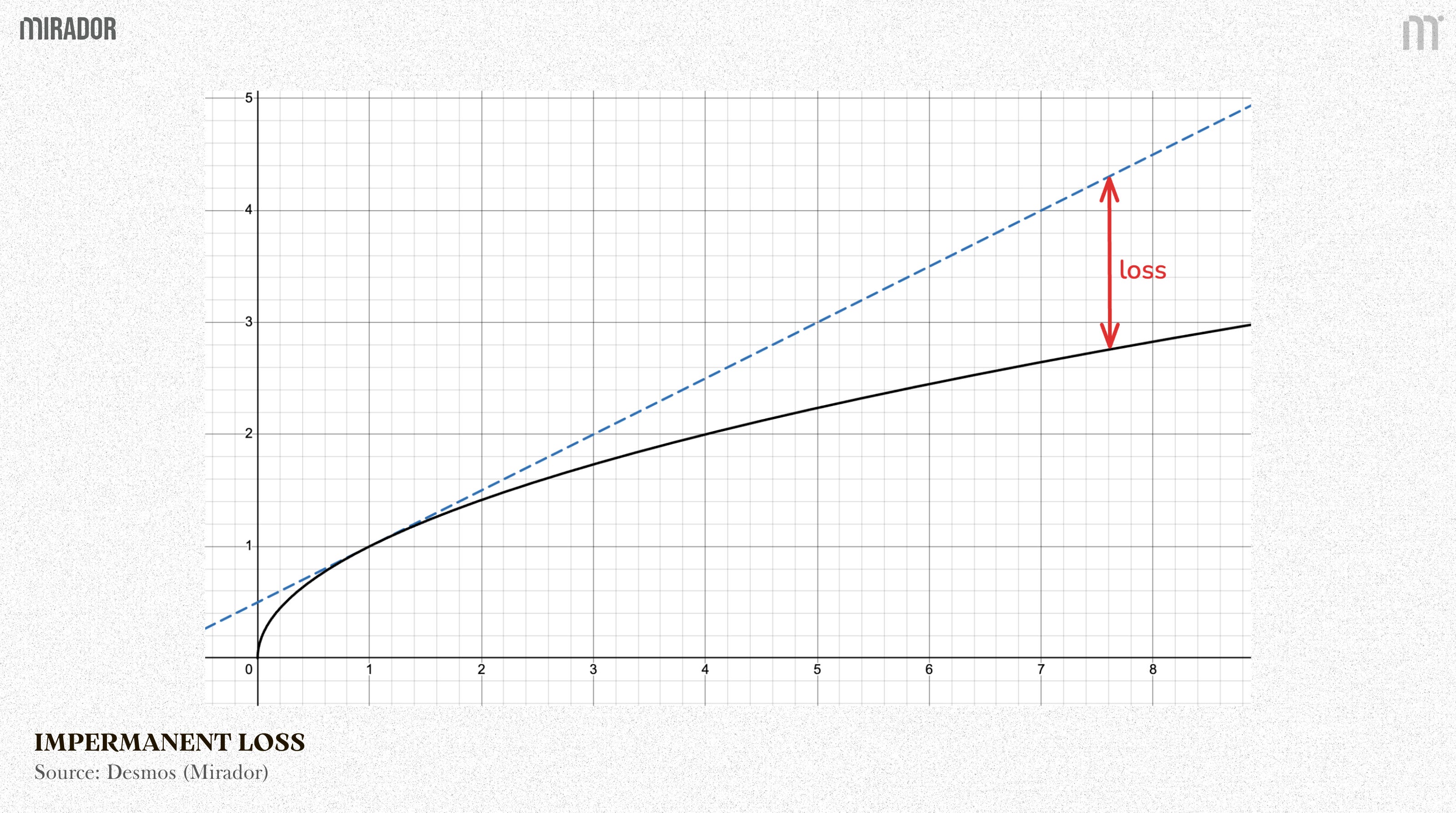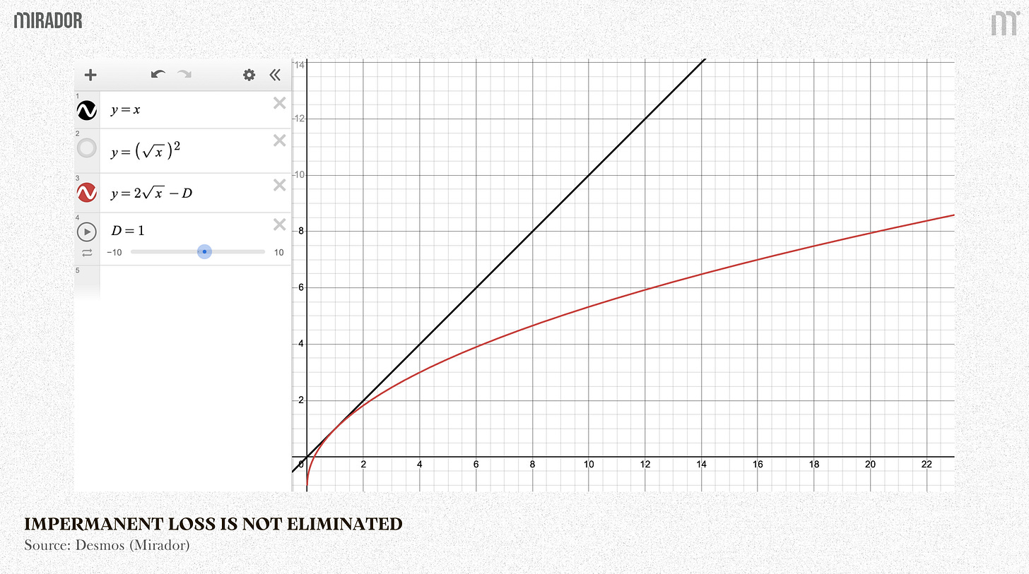 Interestingly, this shape looks very similar to the impermanent loss diagram shown in Part 1.